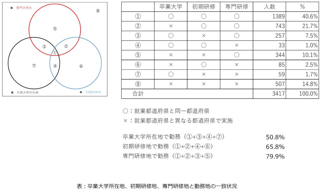 卒業大学・初期研修病院・専門研修病院の所在地と専門研修修了後の勤務地の一致状況